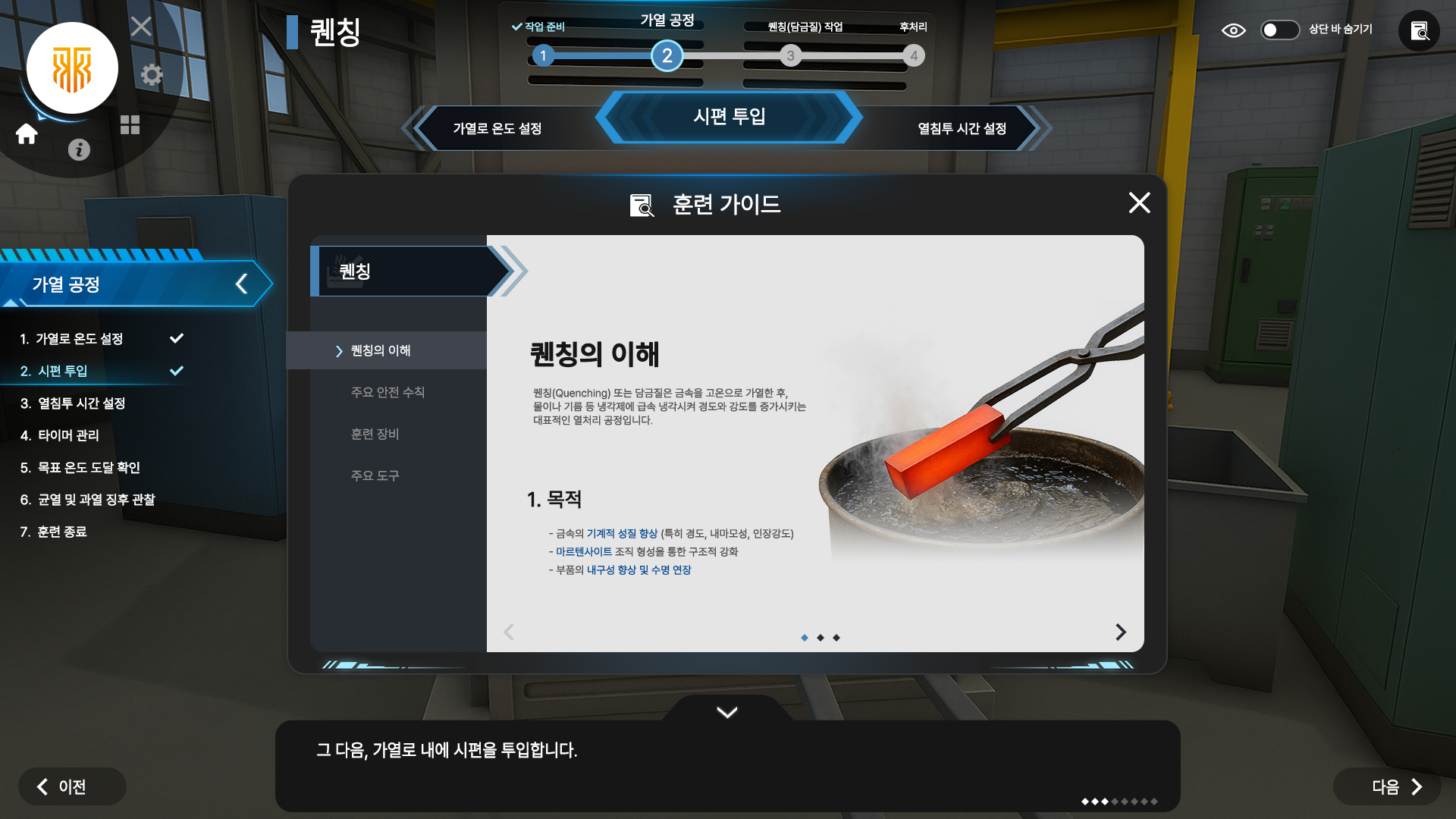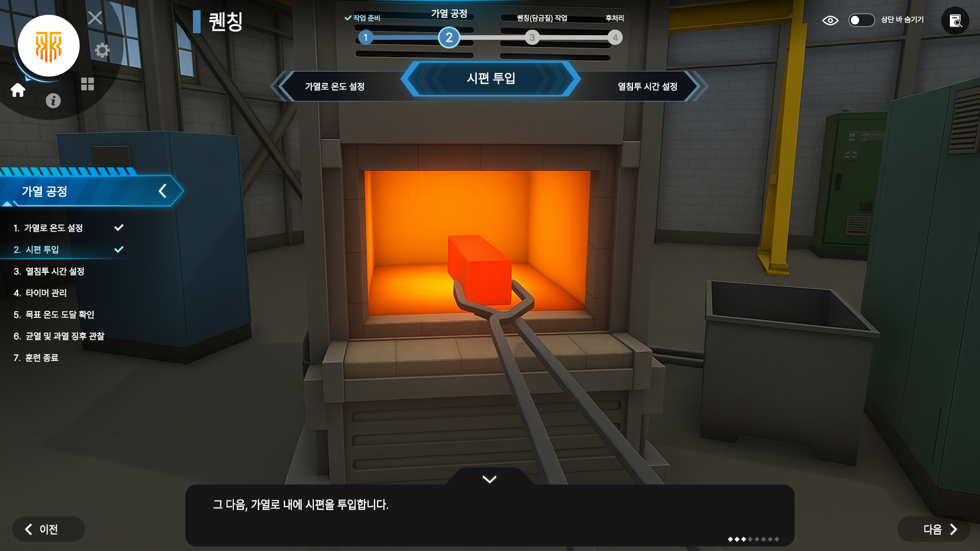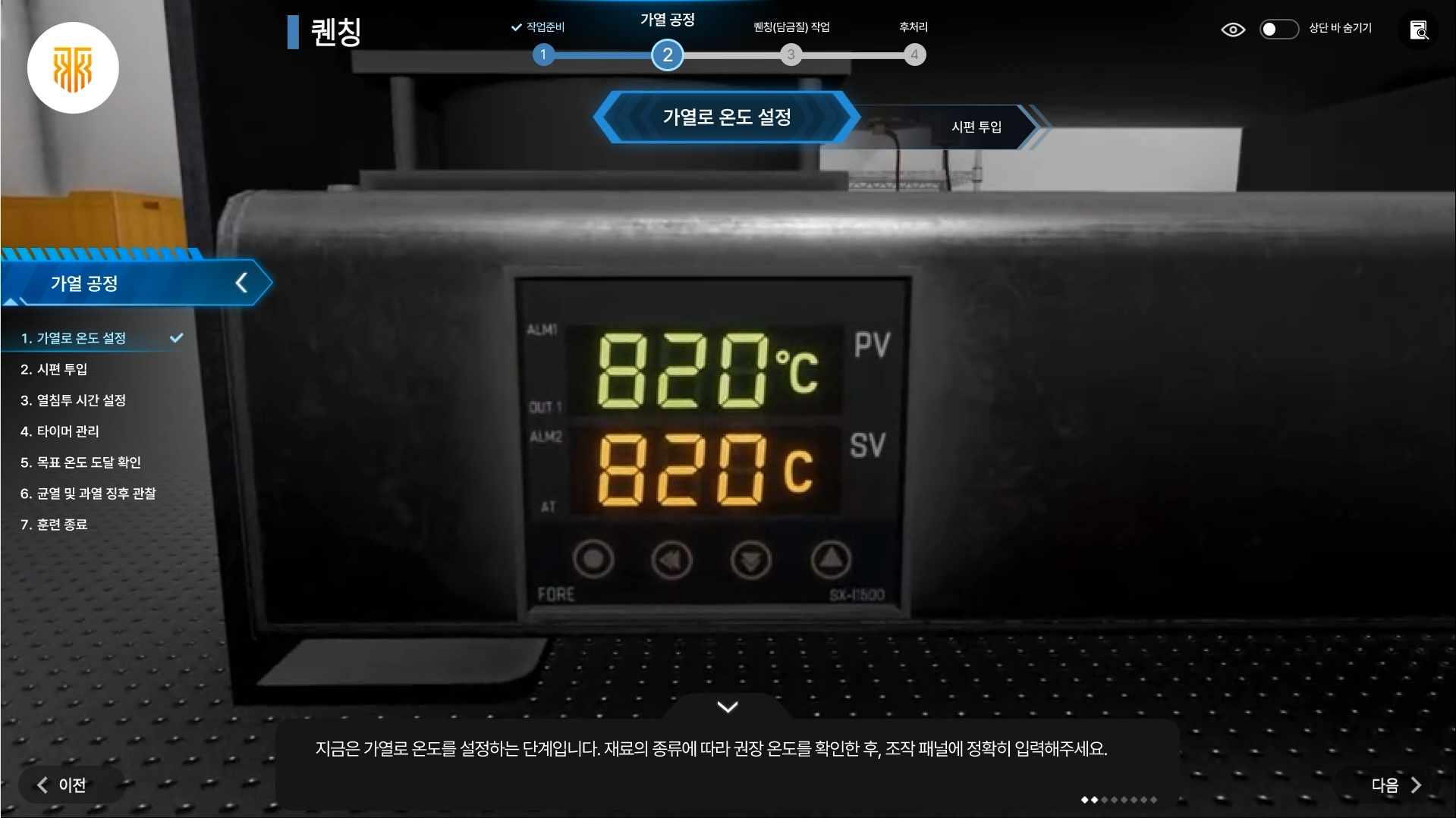 가열·담금질·후처리 등 열처리 전 공정을 실감형 XR 환경에서 안전하고 효율적으로 학습할 수 있게 합니다.