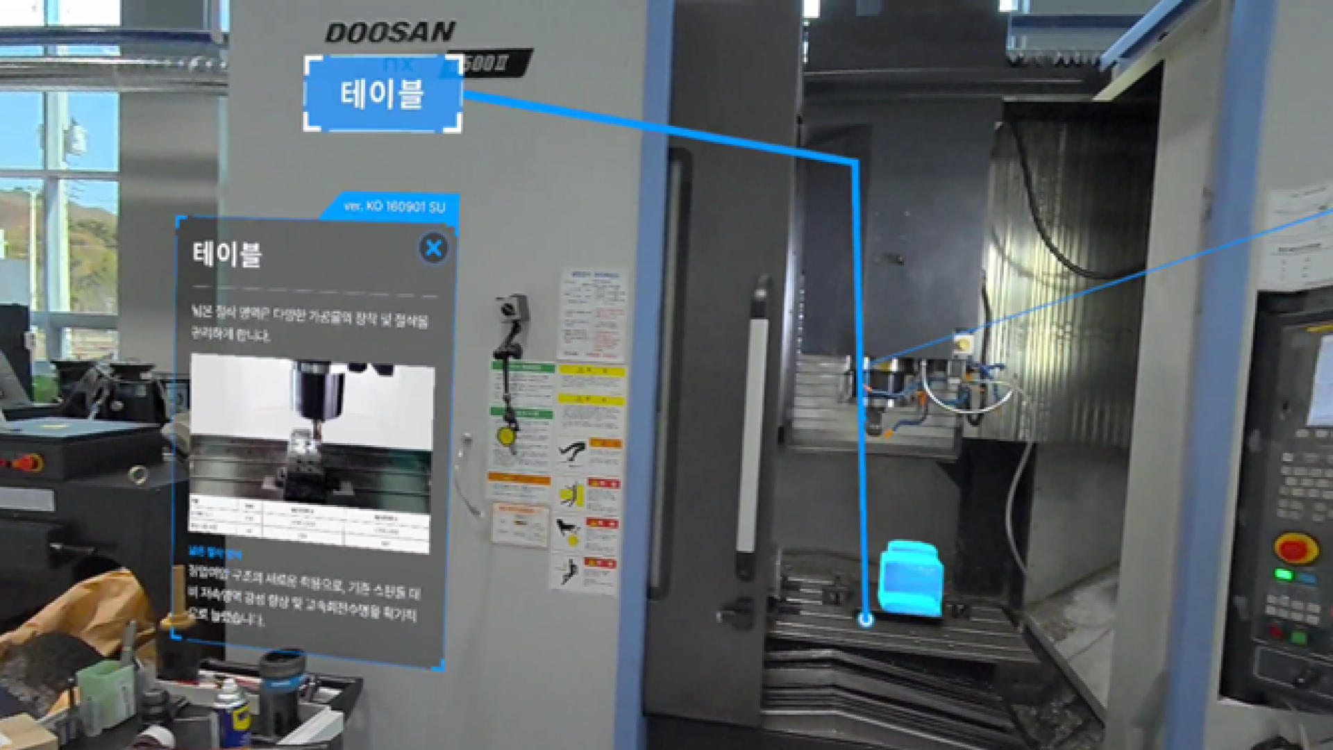 스마트 제조 교육 솔루션은 실제 장비에 AR 기술을 적용해 작업자에게 실시간 직관 정보를 제공함으로써